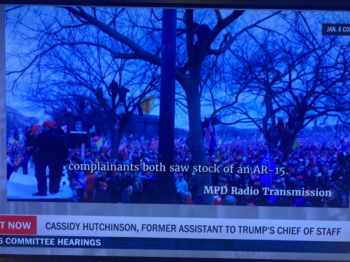 Vice Chair Cheney says the Committee has learned that people who willingly entered the enclosed area for Trump's Jan. 6th speech were screened. They had weapons, including: pepper sprays, knives or blades, brass knuckles, tasers, body armor, gas masks, AR-15s, and more (!!!)