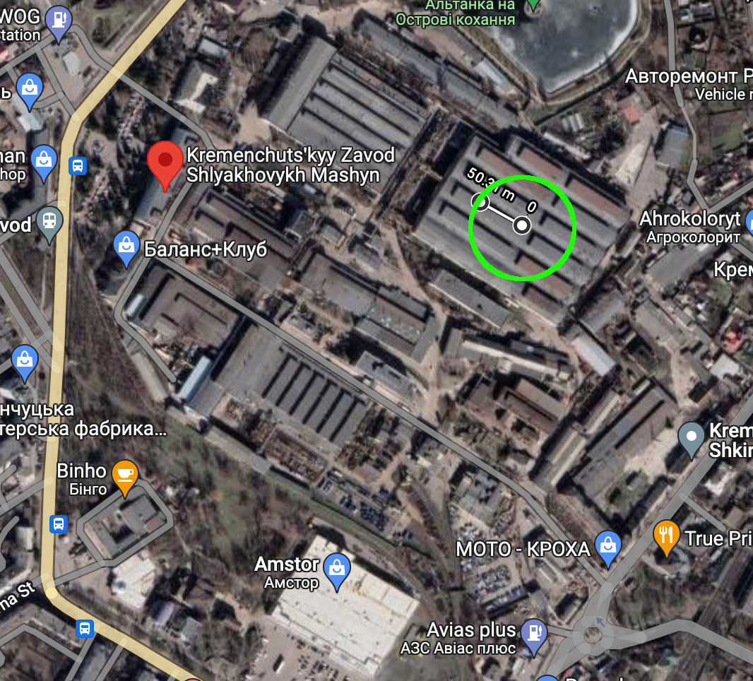 6/ Second bad choice: the target itself. Russia appears to have been trying to target the Kremash machine plant. But the plant is right in the middle of the city, surrounded by civilian infrastructure and housing. The Amstor shopping centre is just to the south of the plant.