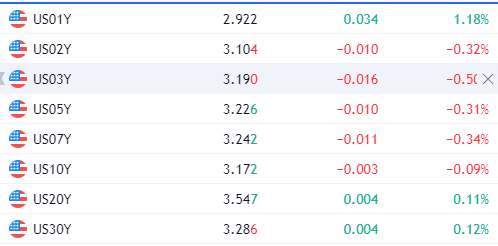 从宏观情绪来看,虽然今天美联储已经没有多说什么了,但是美国经济衰退的预期还是让所有投资人都感觉到了寒冷,美金在持续的升值,美金指数也在上升,这就代表了风险市场的中的资金会更加的减少,而美债的集体跳水式的下跌也让我们知道了资金的去处,昨天还仅仅是一年和两年期的短期美债被争抢。 ImageImage