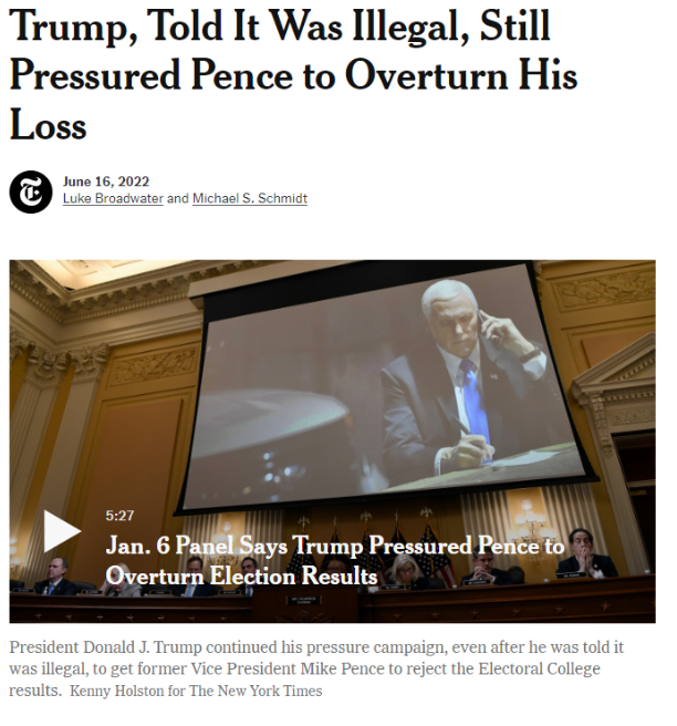 The new evidence: Trump was told Pence would violate law if tried it. Trump pressed ahead anyway