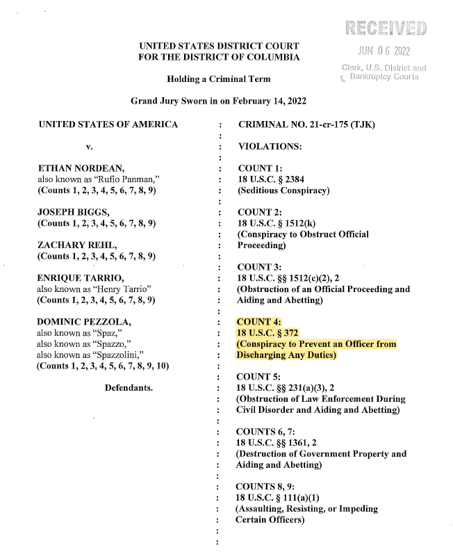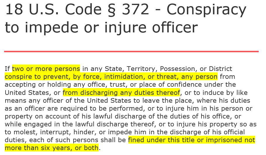 3/ The third one – Conspiracy to Prevent an Officer from Discharging Duties – deserves special emphasis b/c it’s often overlooked in public commentary.