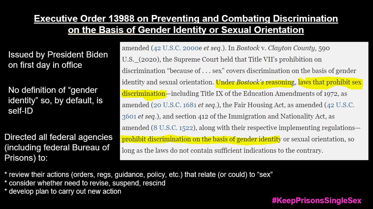 Interesting. # 6 above addresses "public accommodations." In contrast, prisons are considered "public facilities." This appears not explicitly seeking to sex-integrate "facilities" based on gender ID. Has word gotten out that mixed sex prisons result in rape and pregnancies? 11/