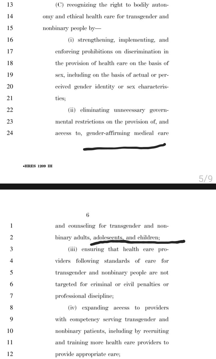 (c) comprehensive "gender-affirming" healthcare for federal employees and their dependents, including in the military ($$$$)