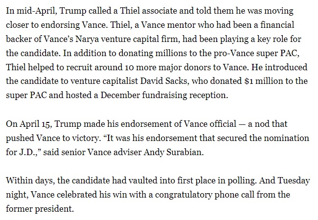 In the last two years, it seems like Thiel and Sacks have greatly increased their output of funding right-wing candidates. J.D. Vance and Blake Masters being two Senate candidates both heavily attached to the Thiel network. politico.com/news/2022/05/0…