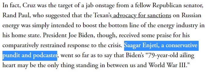 The anti-supporting Ukraine position most of these people have is also a Sacks position. This article details a recent rightwing conference where the speakers (including Sacks) voiced that position. (Saagar Enjeti is Ball's parter on Breaking Points) theatlantic.com/politics/archi…