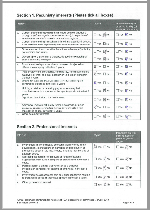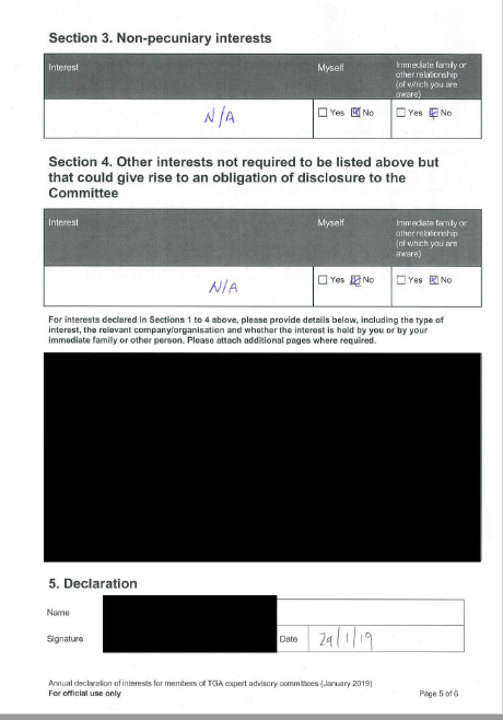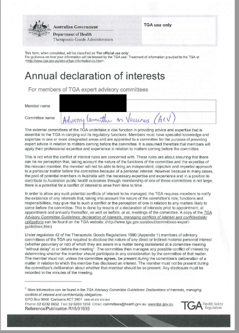 50% of members on @TGAgovau's advisory panel on covid-19 vaccines declared financial conflicts of interest. When I asked for UNREDACTED names & details of their COIs, the TGA said it was “personal information” & therefore exempt under the FOI Act.