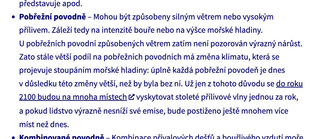 👉 klimatická změna má přímý vliv na jeden typ povodní, které jsme nezmiňovali, protože nemáme moře.