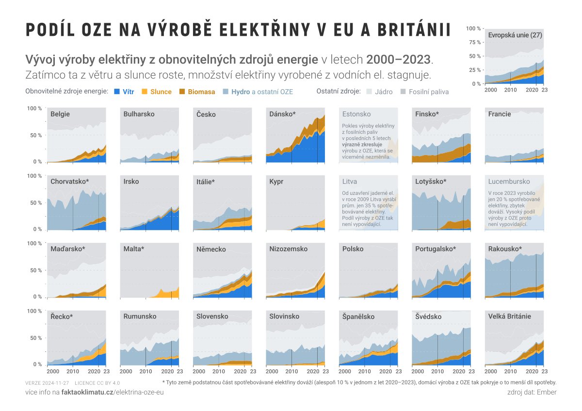 Kromě Dánska (+72 p. b.) došlo k největšímu nárůstu obnovitelné elektřiny mezi lety 2000–2023 v: