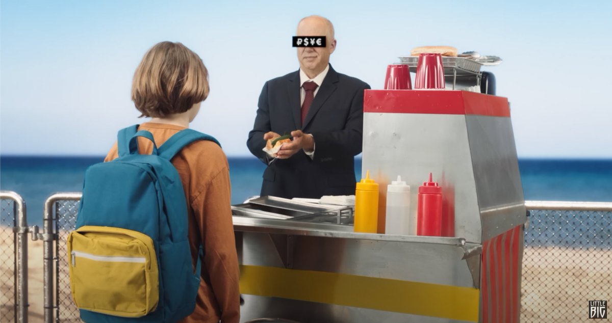 в принципе можно уже на этом закончить этот импровизированный тред, но на всякий случай поясню: ВОЗМОЖНО, что ребенок с флагом Украины означает наивный украинский народ, которому злой дядечка-капиталист-американец продает оружие в форме типично американского стрит-фуда