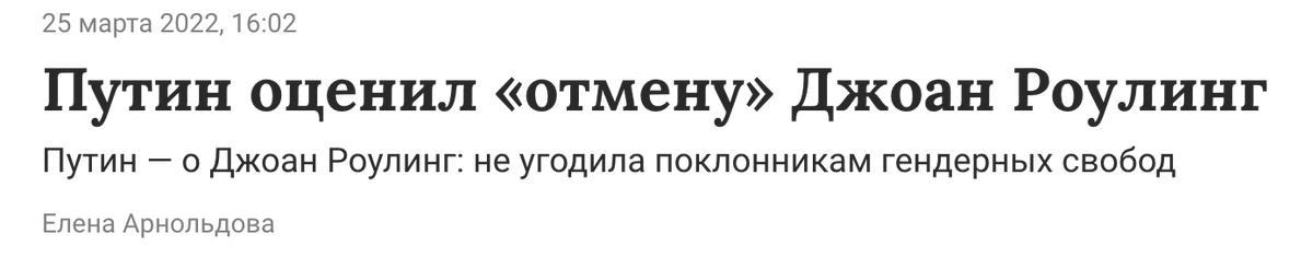 а не созвучно ли это с Путиным и другими говноедами, которые утверждают, что русских и Россию и русскую культуру отменяют? это же чисто риторика Путина, он вот даже про Роулинг недавно говорил