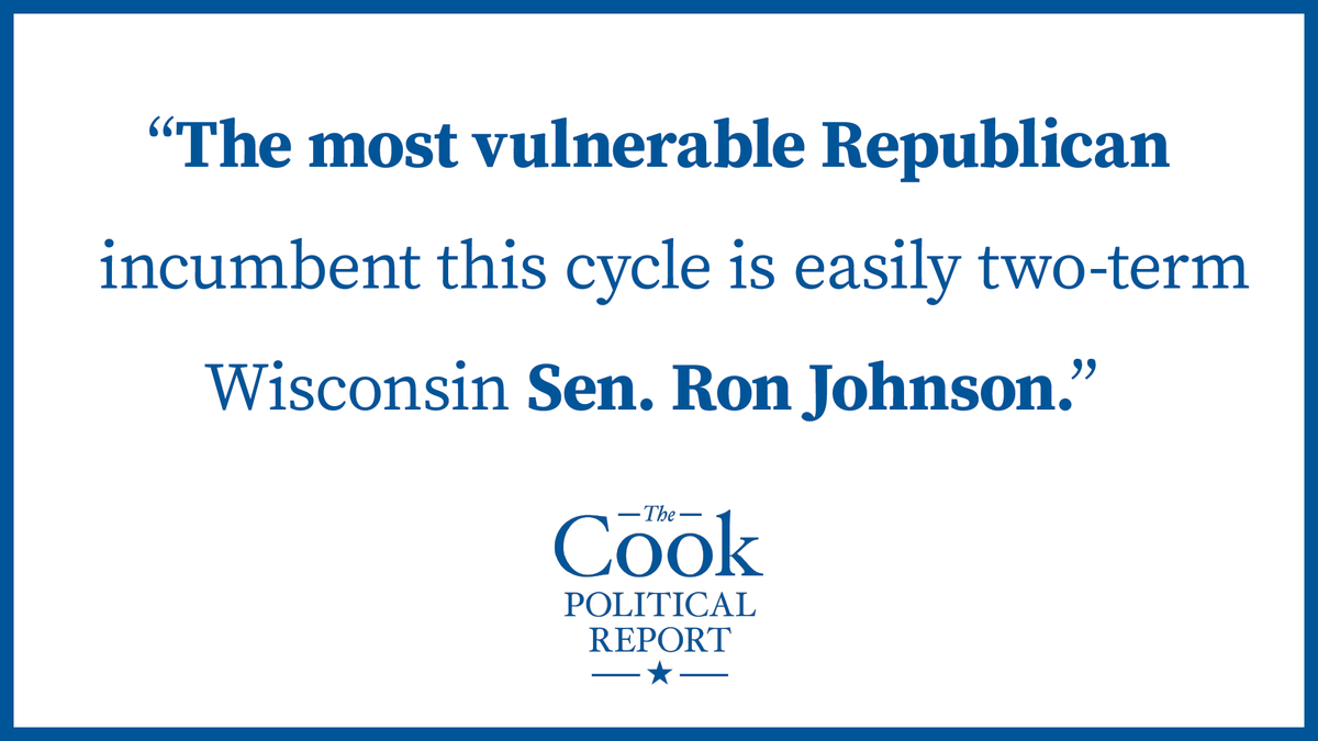 The Cook Political Report lists three Dem-held Senate seats as toss-ups (AZ, GA, NV) and two R-held seats: PA and Wisconsin. If we win all five of those, we’ll have 52 Dem Senators. Out of those five states, there’s just one incumbent R: Ron Johnson. cookpolitical.com/ratings/senate…
