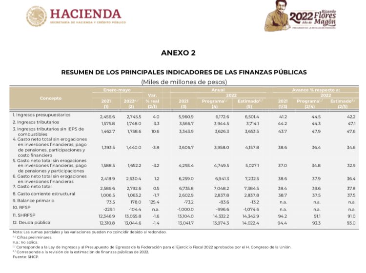 La @Hacienda_Mexico reporta hace unos momentos FINANZAS PÚBLICAS Y DEUDA PÚBLICA A MAYO 2022.