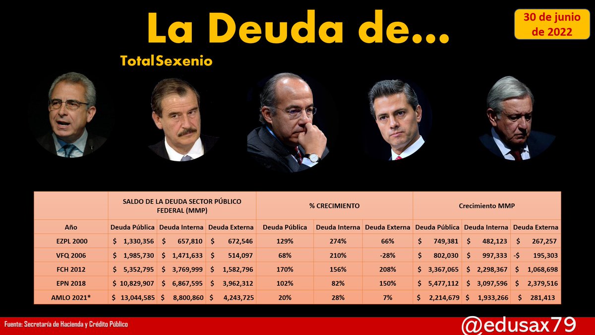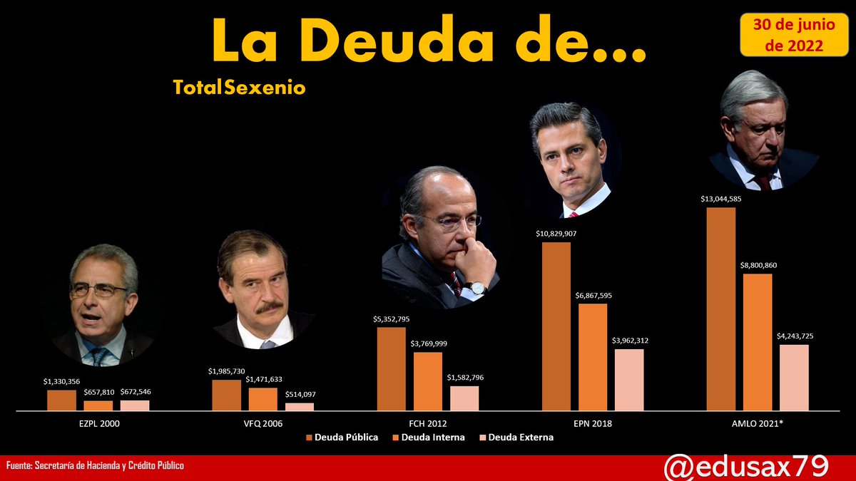 🔺DEUDA PÚBLICA +20% en el sexenio, de 10.8 BILL a 13.0 BILLONES