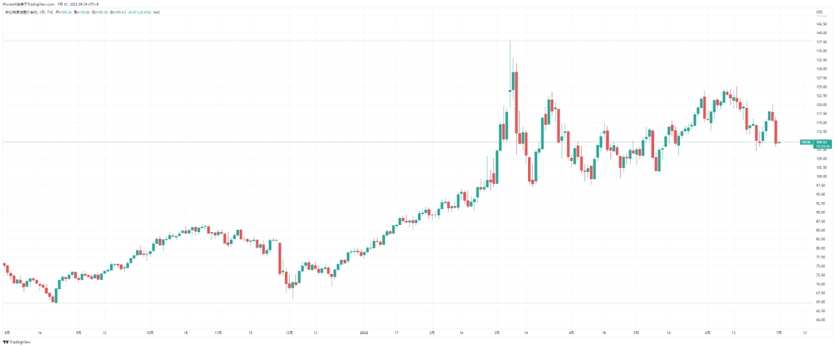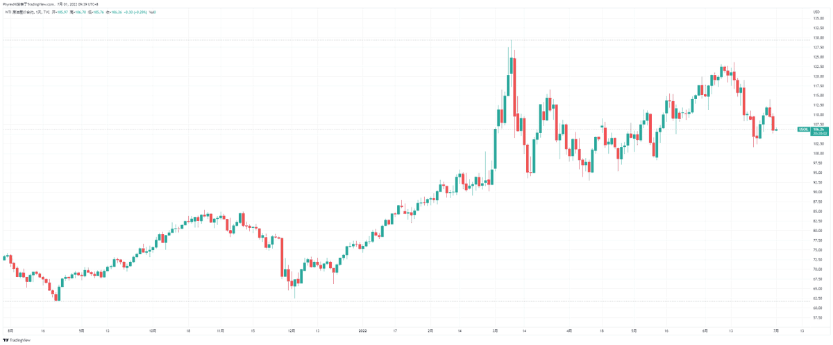 尤其是最新的预测表明,美国Q2的GDP预测数值被大幅调低,甚至不排除出现负值的可能,如果半个月后公布的数据真是如此,那么美联储和民主党的日子就真的不好过了。相对于美金的走强来说,通胀主力的两油在六月的最后一天还是在欧派克+增产的情况下出现了下跌,纷纷跌破了110美金,就看是否可以持续了。