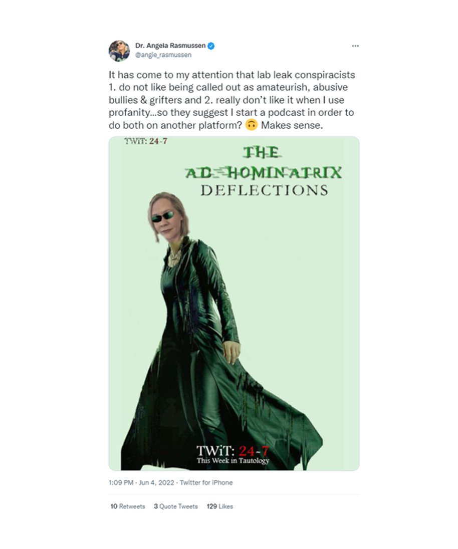 What offends me is gaslighting despite 1M dead Americans. @thackerpd, I'm glad she saw this. I hope all of her DoD friends saw it.