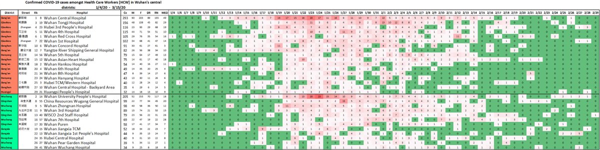 Here, I take @quay_dr's list of hospitals along Wuhan's no. 2 line & add the # of health-care-worker [HCW] cases w/rank. @jjcouey@EduEngineer@Jikkyleaks@dasher8090