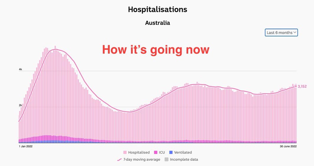 👀WHAT NOT TO DO: Australia 🇦🇺 gave up on containment of #COVID19 in 2022—➡️ever since their hospitals 🏥 are utterly light years MORE FULL than they were in 2020 & early 2021 when mitigation was a thing. PREVENTION MATTERS—please also help HCWs! #CovidIsNotOver