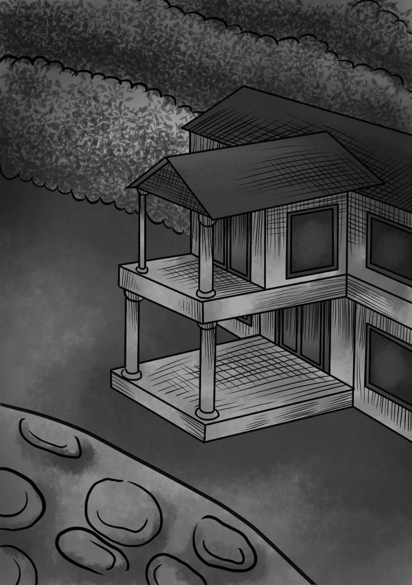 sebuah rumah tua yang menjadi satu-satunya bangunan berdiri di tengah-tengah kebun. Aku menduga itu adalah rumah kosong karena tak ada satu pun lampu yang menyala.