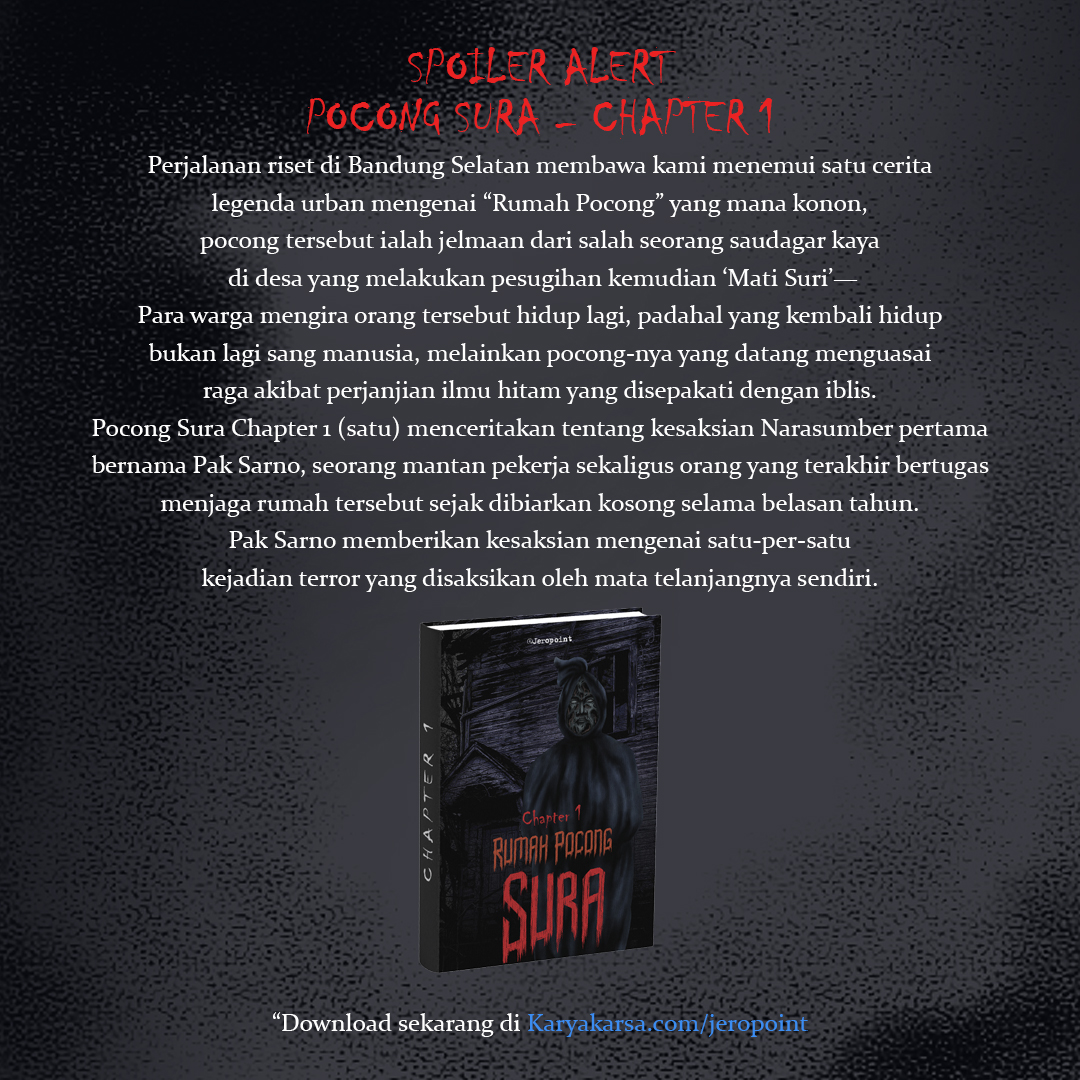 “dulu orangnya ngilmu, pesugihan juga. Terus dia meninggal tapi hidup lagi. Orang-orang taunya dia mati suri, padahal yang hidup lagi itu pocongnya. Awalnya nggak ada yang tau, termasuk keluarganya yang tinggal serumah--”