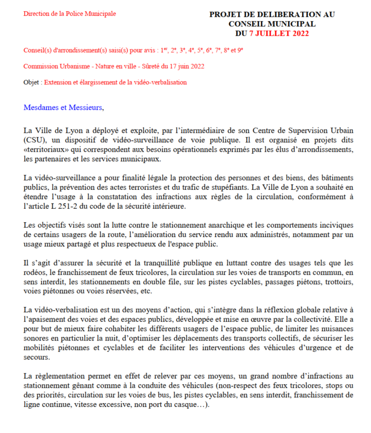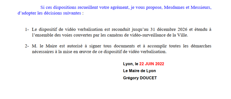 Signe d'apaisement, la Ville dans cette délibération suggère un aspect positif de ce dispositif, et va étendre la vidéo-verbalisation à toutes les zones couvertes par la vidéo-surveillance, avec l'apparition du logo qui va bien.