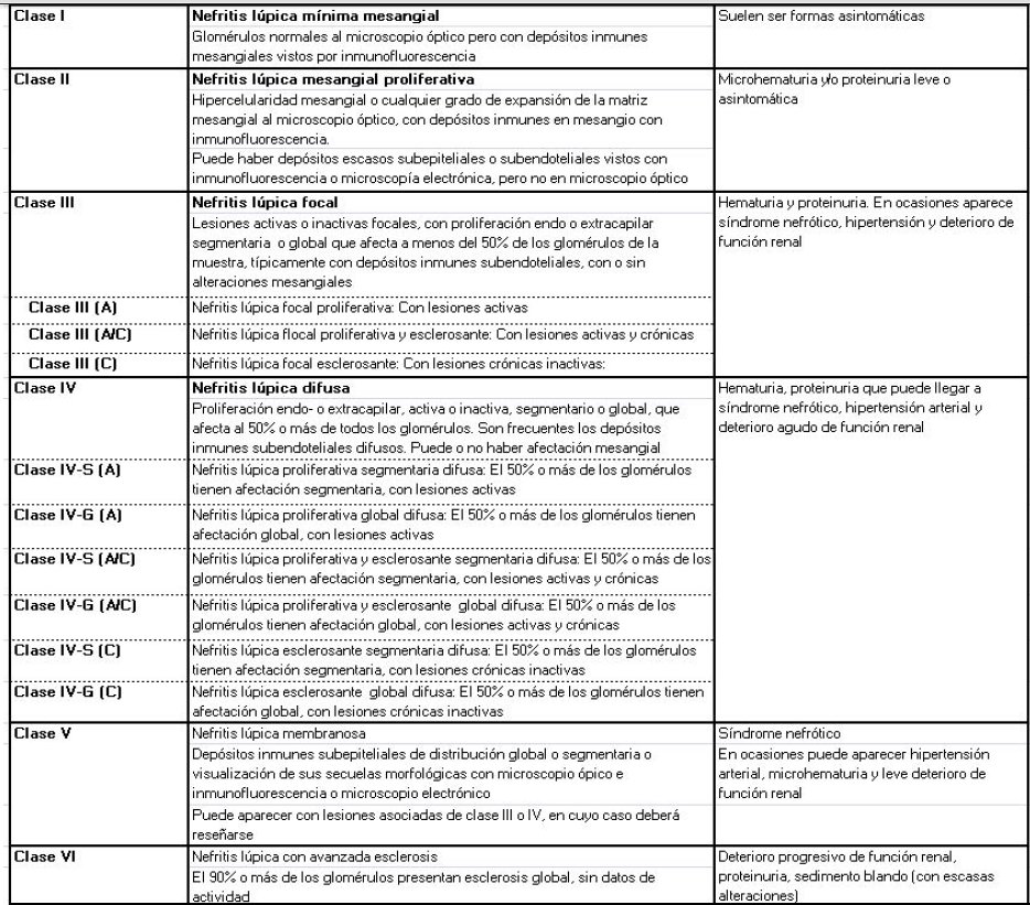 Nefritis Lúpica : Clasificación y formas de presentación Clínica