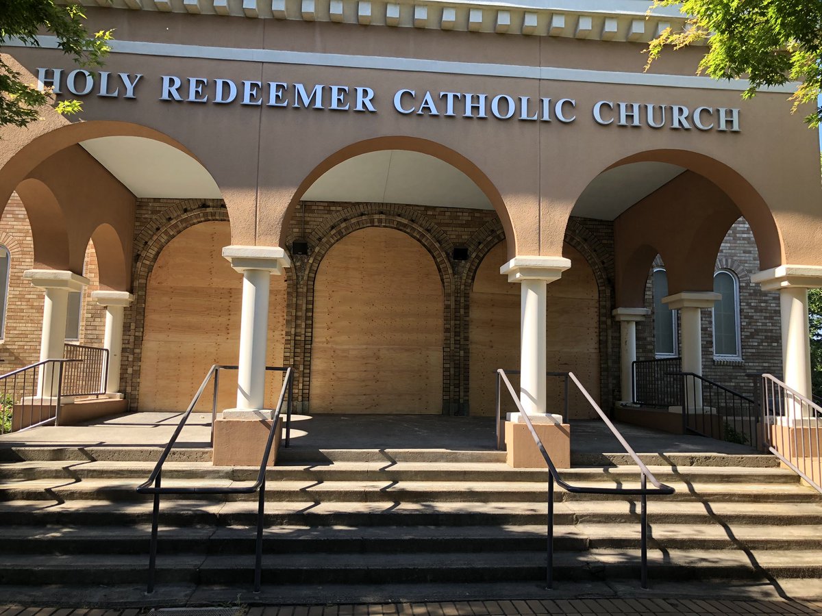 From #Antifa accounts, PPB surrounded them in patrol cars before they could reach their 'target', which was likely Holy Redeemer Catholic Church, which boarded up preparing for tonight.