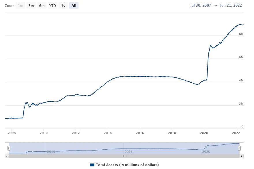 La @federalreserve ha raddoppiato i dollari in circolazione e ora il suo bilancio equivale a più del doppio di quello del 2020. Molto simile il comportamento della @ecb.