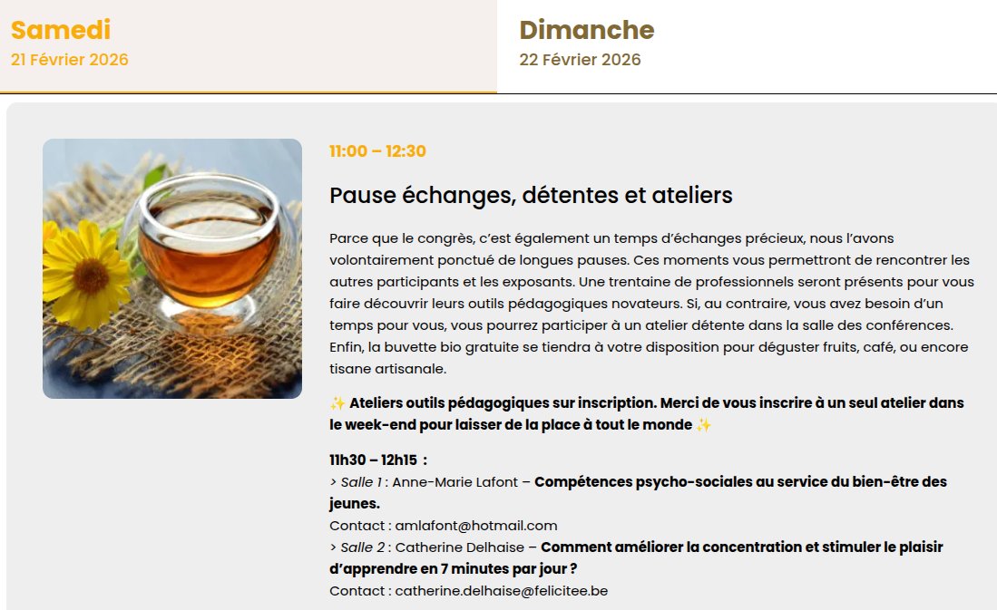 On enchaîne sur les ateliers avec un choix cornélien entre la proposition d'une formatrice à la méditation de pleine conscience de l'AMLE ou la créatrice de la méthode Félicitée® 🤔