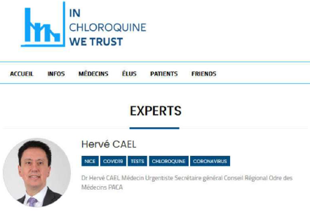 10/ (tout a été effacé, mais vous connaissez Sonic). Le site de désinformation "InChloroquineWeTrust (à Marseille sur Twitter) met en 1ère place d'"expert" le Dr Hervé CAEL (dont il est fait grand cas, comme toujours, de son appartenance à l'Ordre des Médecins: ENORME souci...)🔽