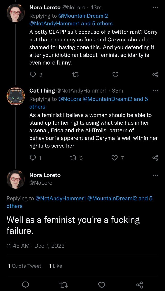 What the fuck is wrong with Tracey Kent that she'd snitch-tag Caryma Sa'd in her replies to Loretto discussing Gilmore's vile harassment & death threats. And what the fucking fuck is wrong with Caryma Sa'd that she'd RT it?