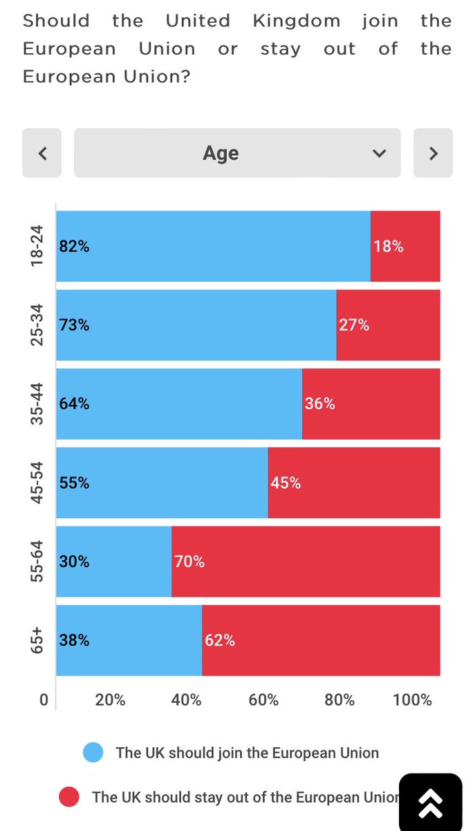 9/ In 2030, Labour (which already has a pro-European membership) will find itself in an environment in which 75%+ of under 40s want to rejoin, and not very many people actively want to stay out.