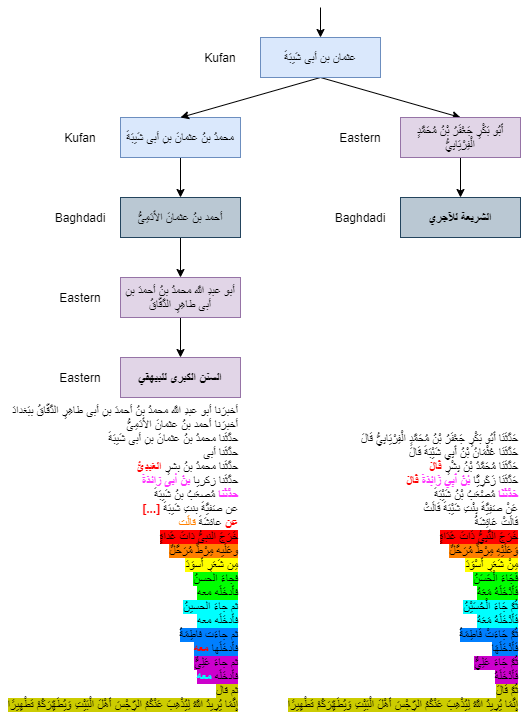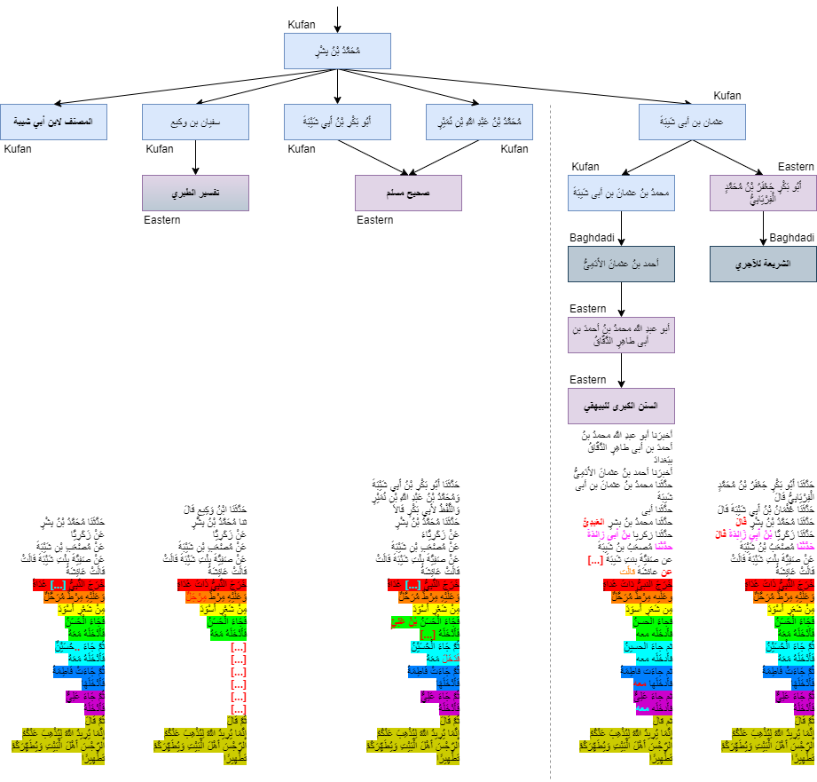 Thus, the ascriptions to the Kufan tradent ʿUṯmān b. ʾabī Šaybah (d. 239/853) are more similar to each other than to other versions of the hadith (sharing certain distinctive wordings), which is consistent with his being a genuine PCL.