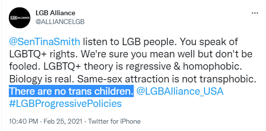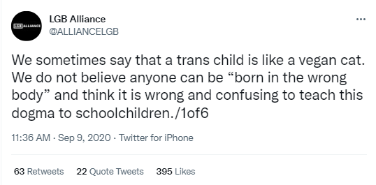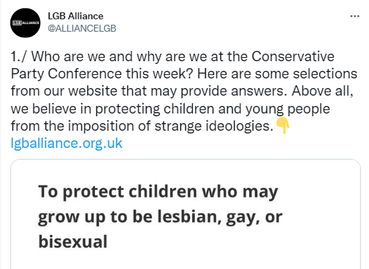This is a very worrying development. LGB Alliance, an organisation that compared the LGBTQ+ community to bestiality and claims openly that "there is no LGBT+ community", has been given lottery funding to set up a phone line to talk to vulnerable young people. A shocking decision.