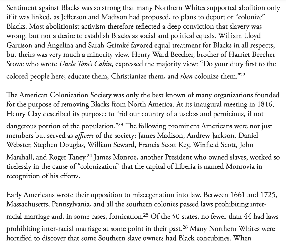 Many supported abolition only if it lead to blacks being sent back to Africa. 44 of 50 states had laws against miscegenation at some point