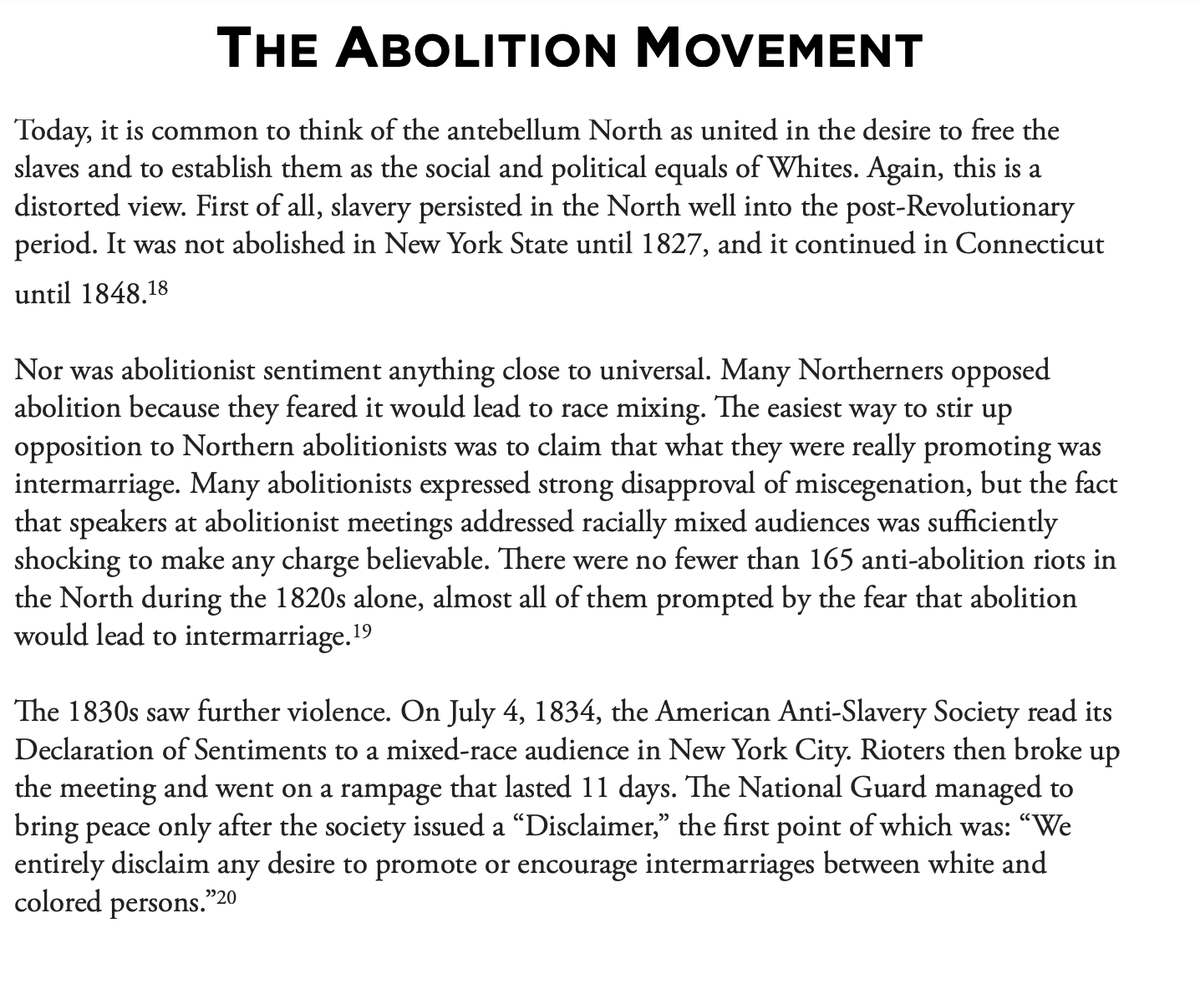 In 1770 40% of white households in Manhattan owned slaves, Jefferson wanted black slaves to removed beyond the point of mixture when they were freed...