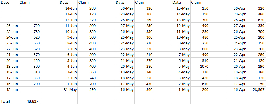 Russia last made a loss claim in its daily briefing of April 16, claiming 23,367 Ukrainian KIA. While they have not provided a total claim since, they provided between daily updates that refer to Ukrainian losses. I added these up to 48,837 KIA as of June 26