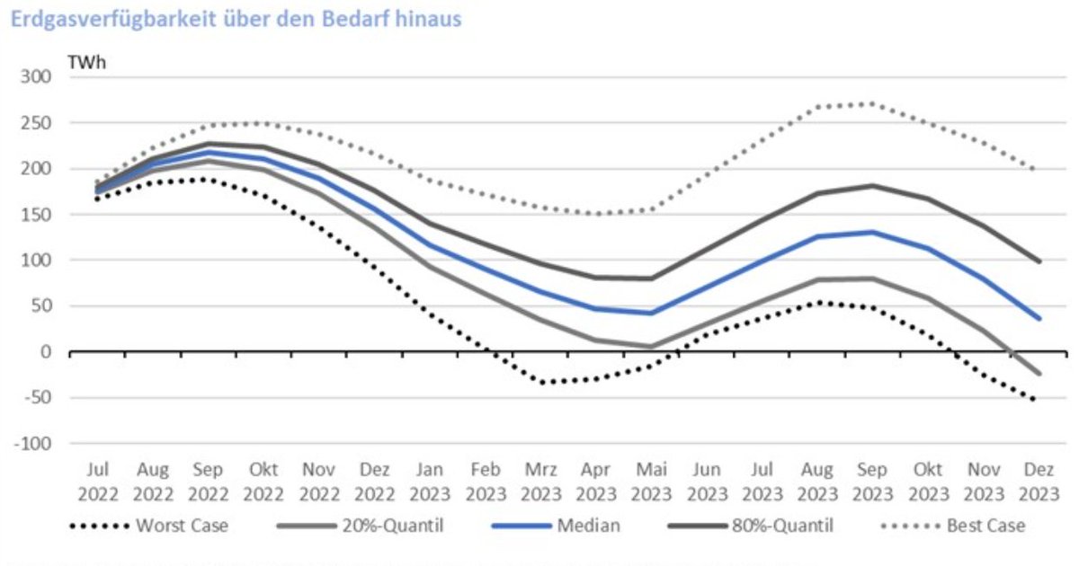 Assuming Russia will stop all gas flows soon, will there be physical shortages, and how severe will those be? The answers we are getting are still quite contradictory. Three German model simulations published in the past few days paint strikingly different pictures. 👇
