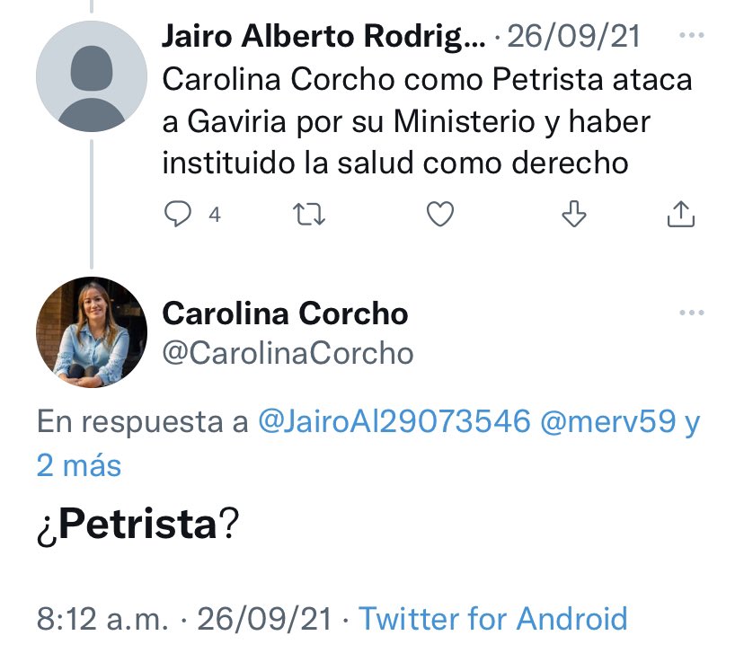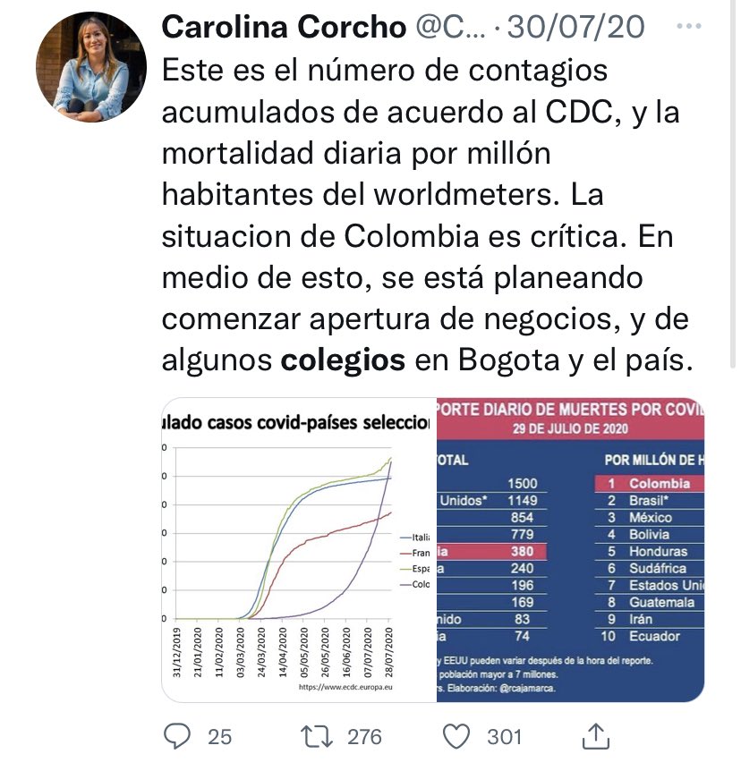 9. En noviembre de 2021 cuando el país inició la reactivación económica y las ciudades comenzaron a reactivarse, Carolina Corcho se opuso y dijo que era “un mensaje equivocado”