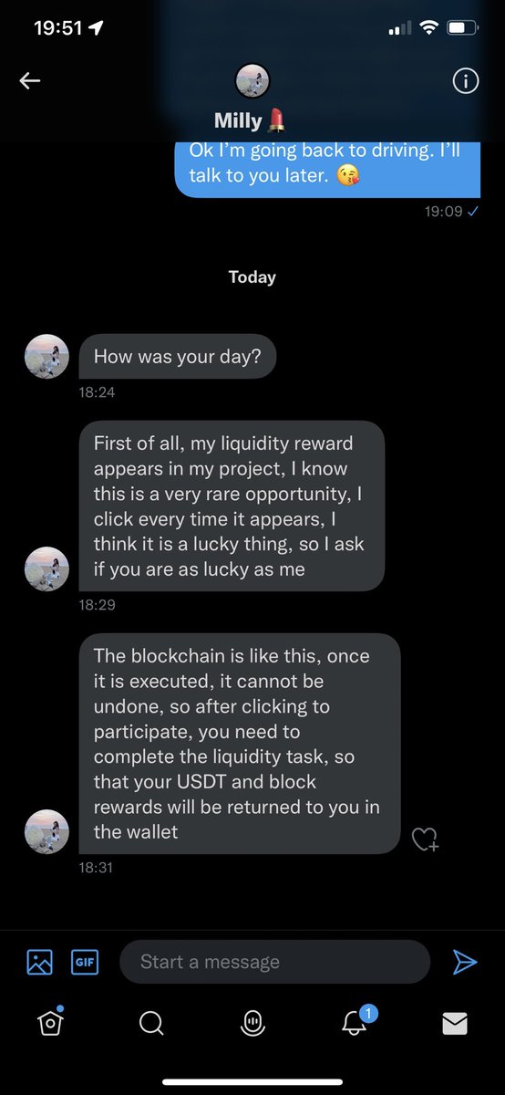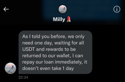 So what are the mechanics here? Milly reaches out to people on twitter, and lets them know about a "blockchain website" where people can earn 2-3% daily rewards just by having USDT in their wallet. No harm if its in your wallet, right?