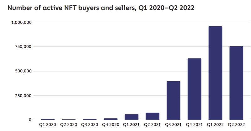 Compare this to NFTs, where actually the number of active users is now higher than Uniswap (per @chainalysis), at ~750k in Q2-22 (with over 300k coming from Opensea alone). The TLDR is that new money is coming in via NFTs and leaving the rest of the on-chain trading world.