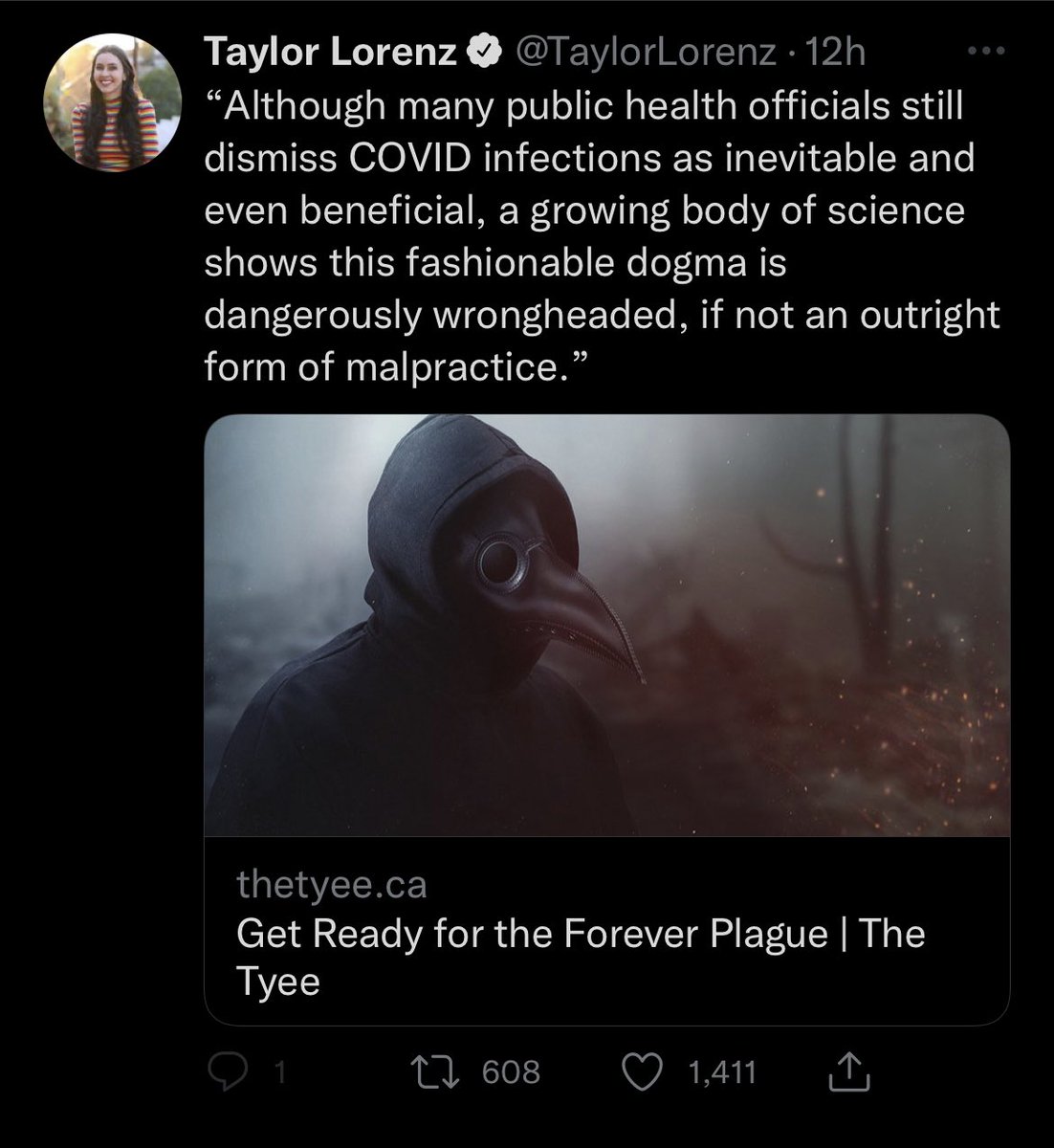 A lot of things can be true: 1) COVID is still real and a serious danger 2) Not all scary claims about COVID are true 3) A lot of criticism of Taylor Lorenz is rooted in misogyny 4) She's done important work re: web culture 5) TL has amplified unscientific claims about COVID