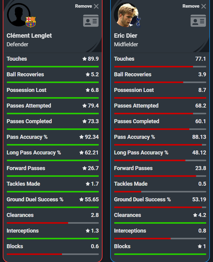 For Lenglet's shortcomings in discipline and quite poor aerial ability, with only 67% aerials won, he more than makes up for this with nearly every other facet of his game.