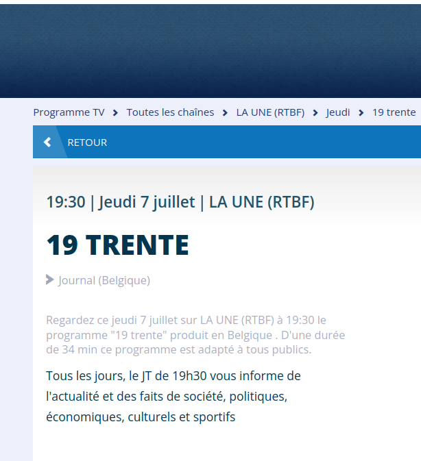 Le JT c'est à 19h sur RTL et c'est à 19h30 sur la RTBF.