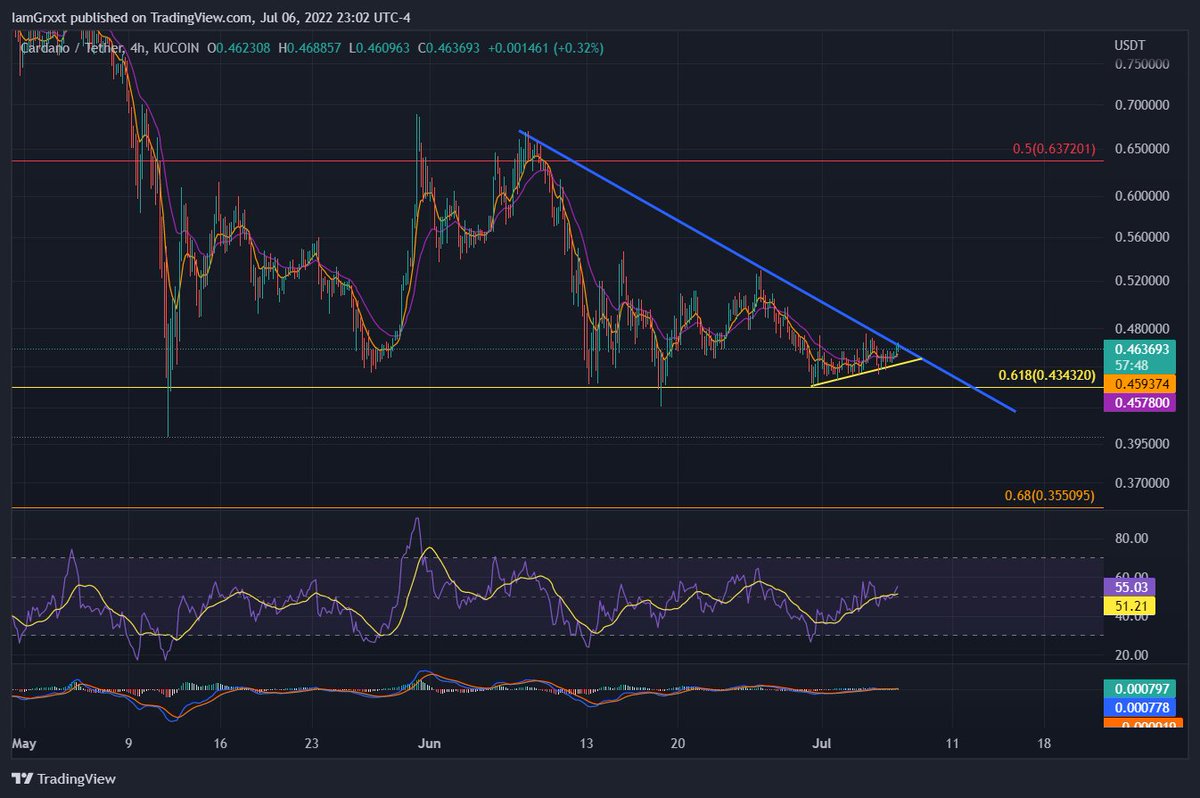 And now for my favorite chart right now. $ADA is no where near bullish on a daily timeframe. BUT, if BTC/ETH and ALTs start breaking out, and #ADA breaks this downtrend, it can fly.