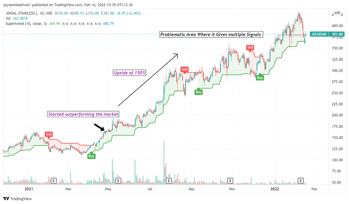 Supertrend to be avoided in Sideways markets as it gives a lot of false Signals .