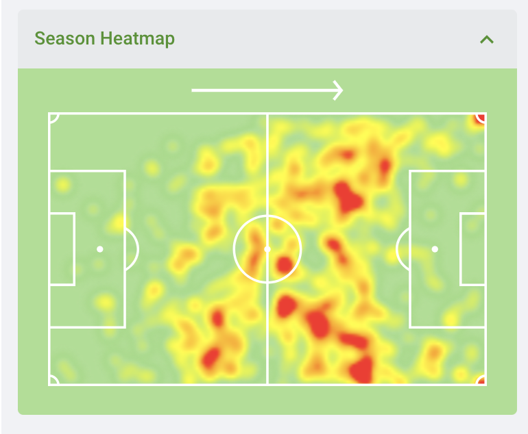 He averaged 2.4 shots and 2.3 crosses per90, alongside 6.67 box touches, which would put him in the 91st percentile amongst attacking midfielders.
