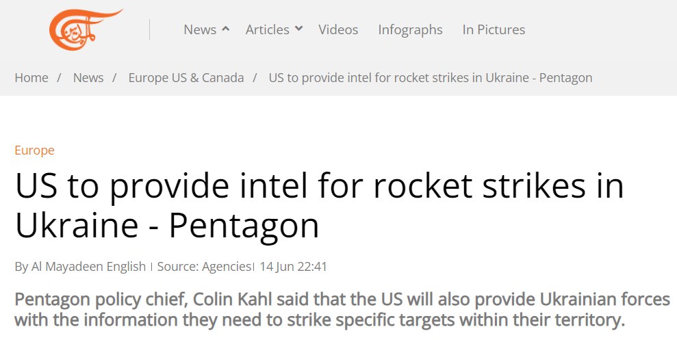 Hierzu äußerte sich bereits Mitte Juni Colin Kahl mit den Worten, dass man Infos an die ukr.Truppen weiterleite, damit sie Schläge gegen "spezifische Ziele" ausführen können