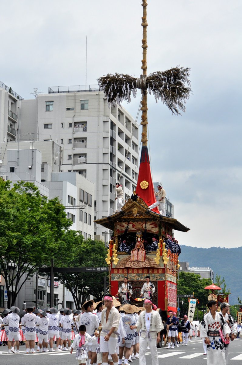 This float alone uses a cedar (not the usual pine) as a conduit for the gods. #GionFestival#祇園祭#Kyoto#京都#Japan