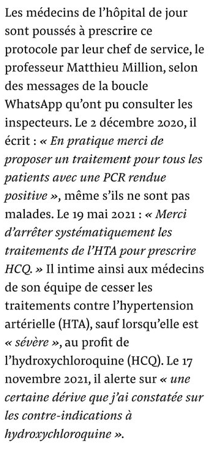 - l'un des chefs de service obligeait les médecins à prescrire de l'hydroxychloroquine (ce qui est illégal) mais aussi leur demandait de cesser les traitements contre l'hypertension. C'est gravissime.🔽