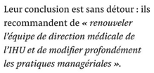 8/ La conclusion du rapport d'enquête de l'Inspection Générale des Affaires Sociales sur l'IHU de Didier RAOULT est sans appel: "renouveler l''équipe de direction". Or qui a été choisi pour succéder à Raoult, malgré des candidats extérieurs à l'IHU ? Un professeur... de l'IHU !🔽